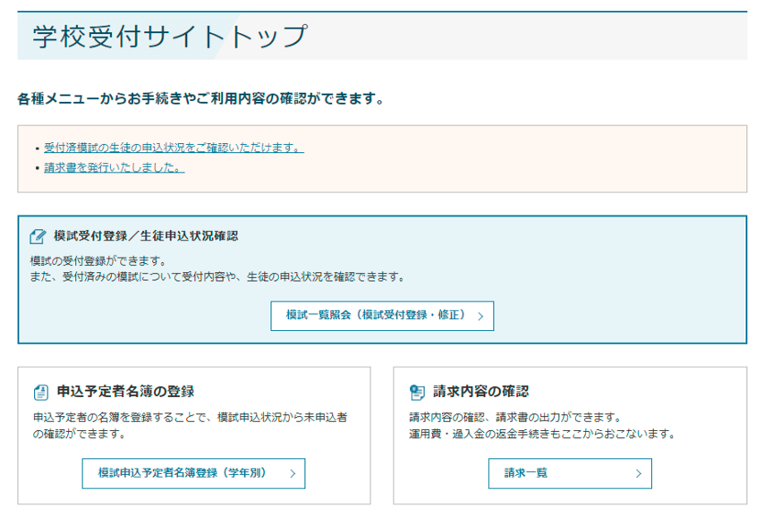 模試の申し込みや、個人成績の確認が可能な、受験生専用のポータルサイトです。